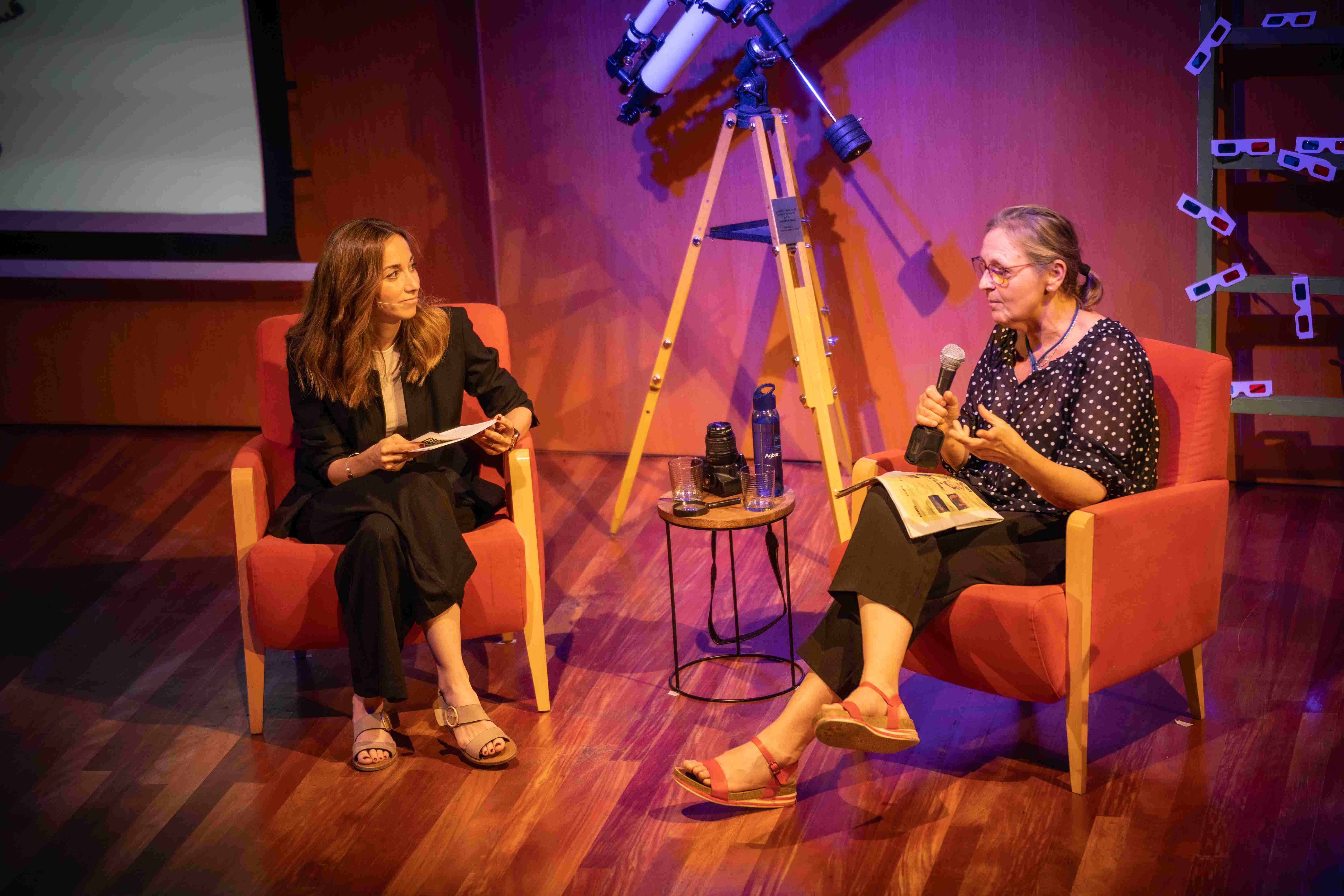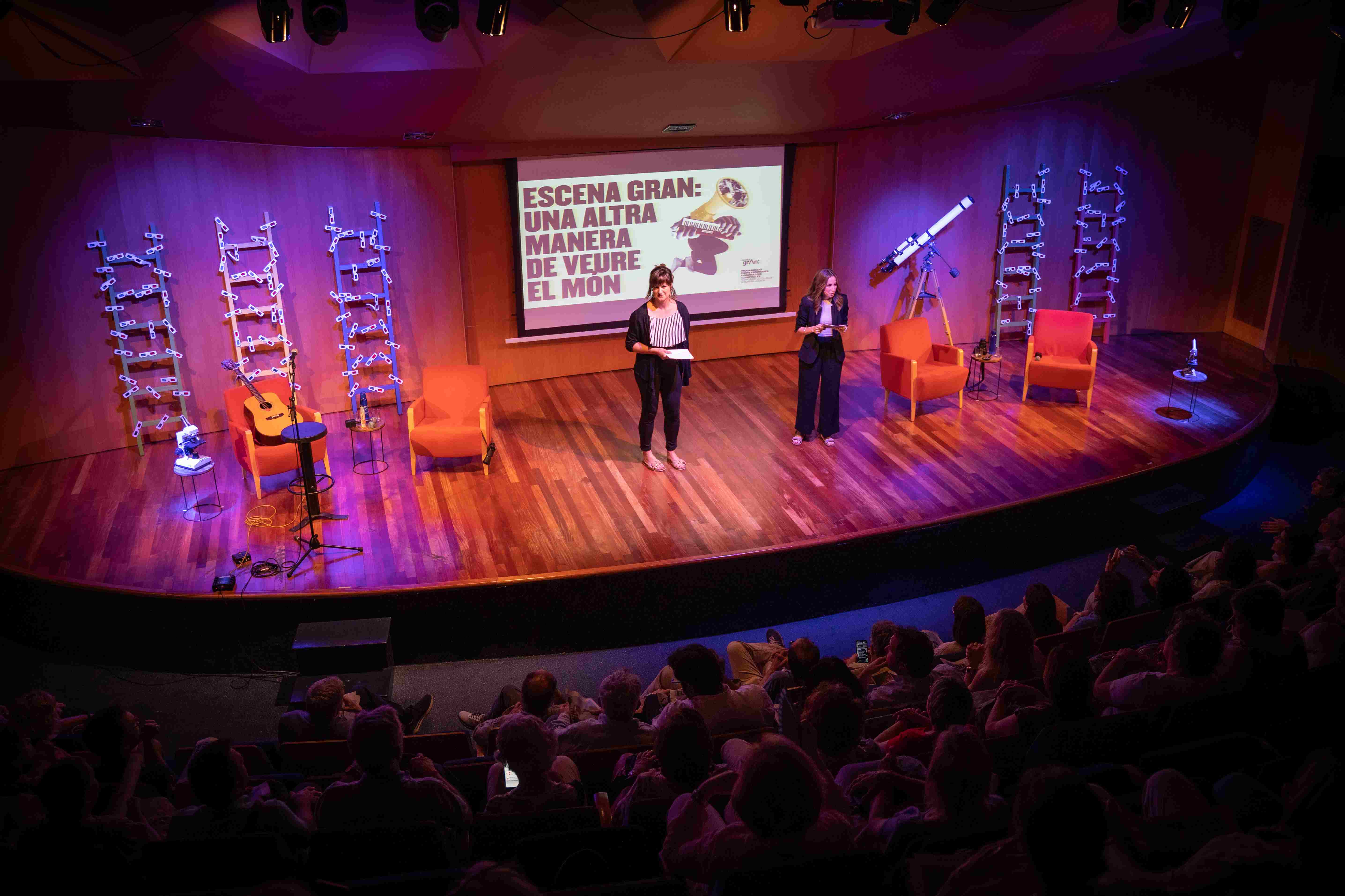 La presentació, moderada per la Clara Martínez i la Lídia Garcia de l’equip de comunicació del Teatre Auditori, va tenir lloc a la sala petita del Teatre Auditori, que es va vestir amb tota mena d’objectes que feien referència a l’acció de ‘mirar’: ulleres 3d, telescopis, lupes, microscopis... Objectes que ens apropen a mons diversos i plens de riquesa, igual que ho fan els artistes i les companyies d’aquesta temporada. Ells i elles seran els nostres binocles, les nostres ulleres, la nostra lupa. Perquè gràcies a la seva mirada, a les seves propostes, podrem descobrir noves maneres de veure el món, un món plural i ple de diversitat.